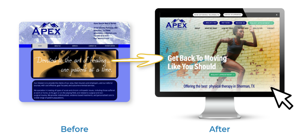Here’s a good example from Apex PT. While their passion for individualized care was always clear, their original website did not show how great life could be after finishing their plan of care.